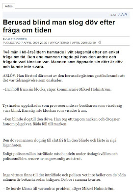 Jag var i Eslöv idag och gjorde ditten och datten. Bl a var jag i en matbutik och innan jag klev in där så noterade jag tre småkillar som höll på att greja och dona utanför entrén. Efter att jag hade gjort mina inköp och klev ut upptäckte jag vad de där tre småkillarna hade grejat och donat så med. Mitt framför fötterna på mig låg nämligen en blänkande 5-krona, men helt ensam var den inte. Runtom 5-kronan var nämligen ett långt, vitt papperssnöre knutet, och i ena änden av snöret satt som sagt myntet, och i den andra änden av snöret - som befann sig bakom husknuten ca 30 m bort - stod en av de där småkillarna och höll i för glatta livet. Inte nog med det, småkillarna var dessutom utrustade med walkie-talkies OCH en av dem stod beredd med mobiltelefonkameran, "väl dold" bakom en mindre snöhög.