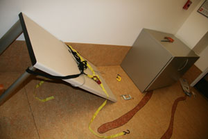 Så jag rensade ut all gammal bröte vi samlat på oss. Blankpolerade golvet och så in med högteknologiskt maskineri! Blått blev det, harmoniserade fint med golvet och blev en läcker kontrast till den ljusa furun i lastbackarna.